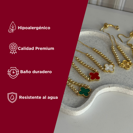 Pulsera Trebol |Baño en Oro 18K + Envío Gratis